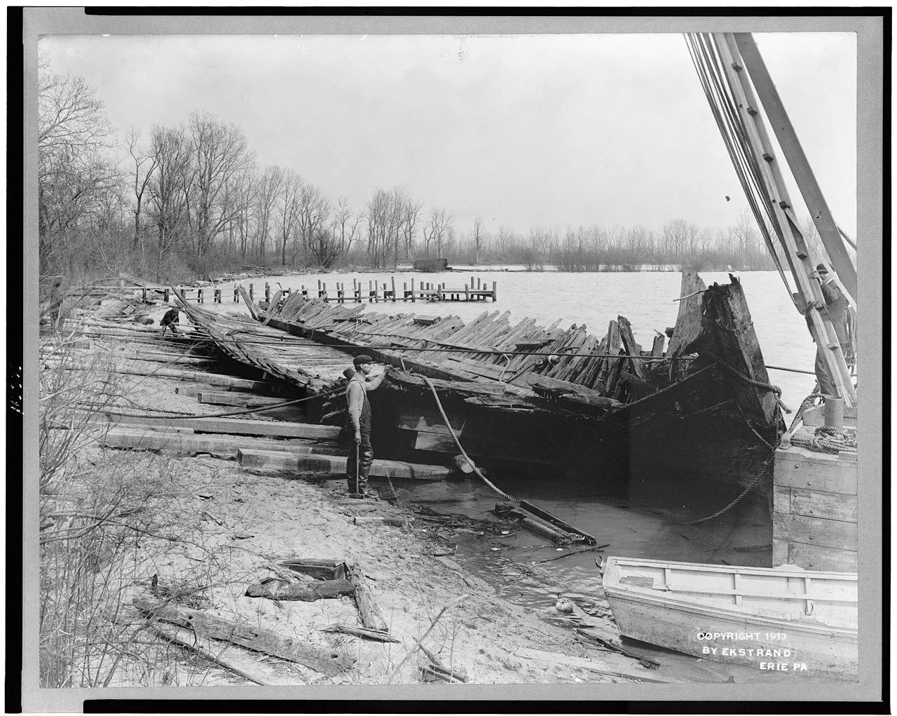 Title: Remains at water's edge of USS Niagara Brig, flagship of Commodore Perry during the 1813 Battle of Lake Erie Abstract/medium: 1 photographic print. Miscellaneous Items in High Demand, PPOC, Library of Congress.